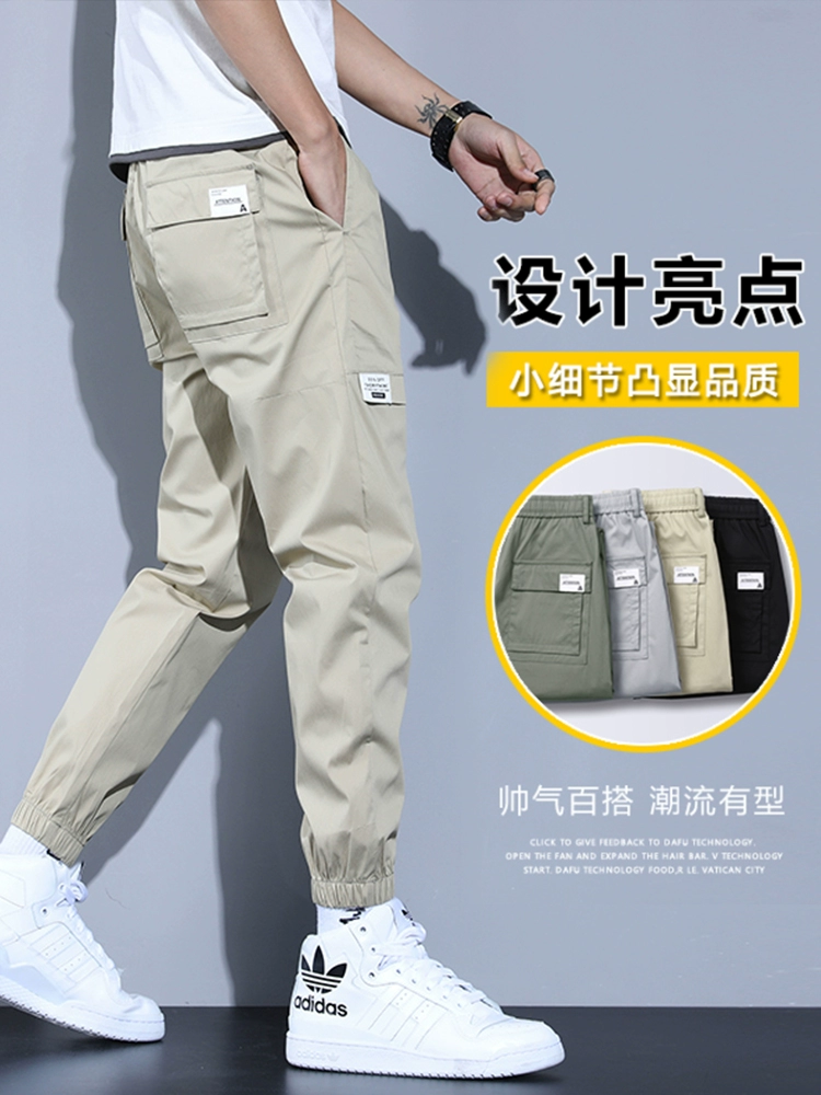 啄木鸟休闲男士运动男裤2025新款束脚裤夏季男生工装裤子冰丝百搭