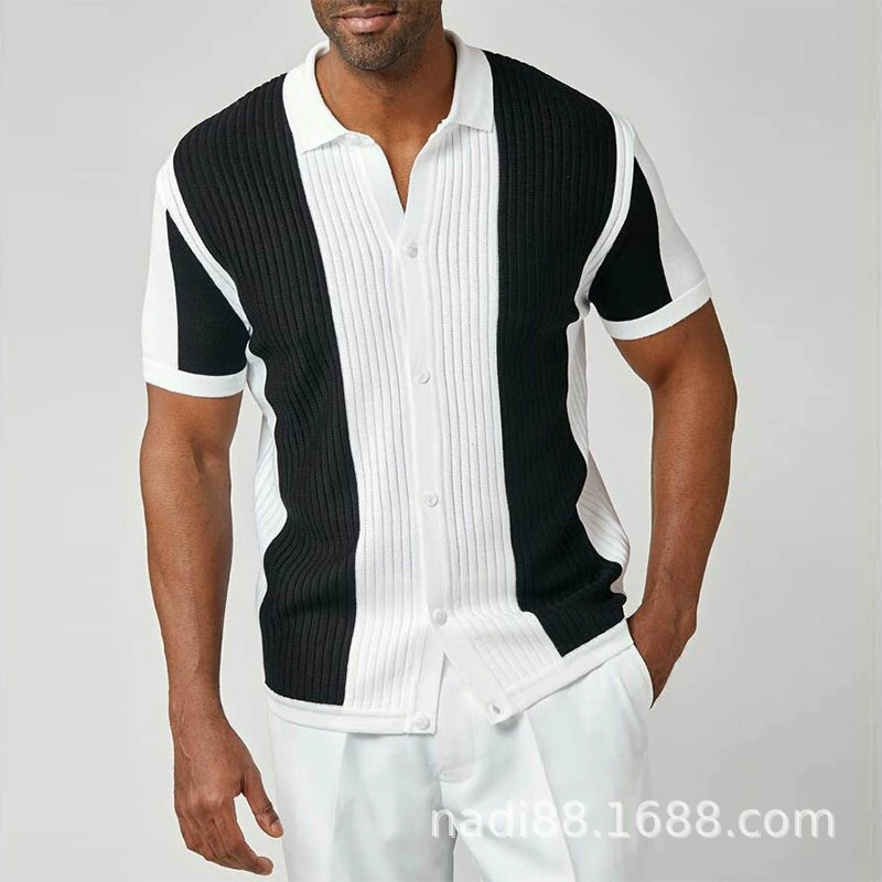 夏季新款美式衬衫男宽松休闲条纹Polo衫大码短袖衬衣潮Men Shirts