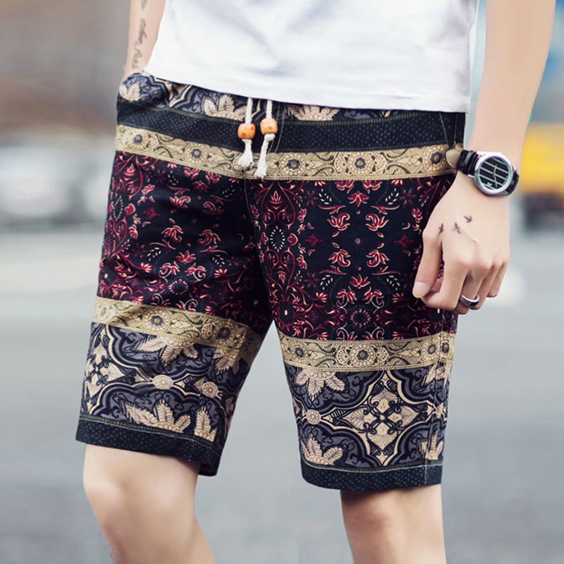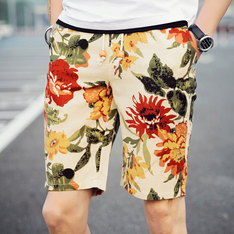 夏花色短裤男士潮流修身五分裤中裤沙滩裤 man short pants