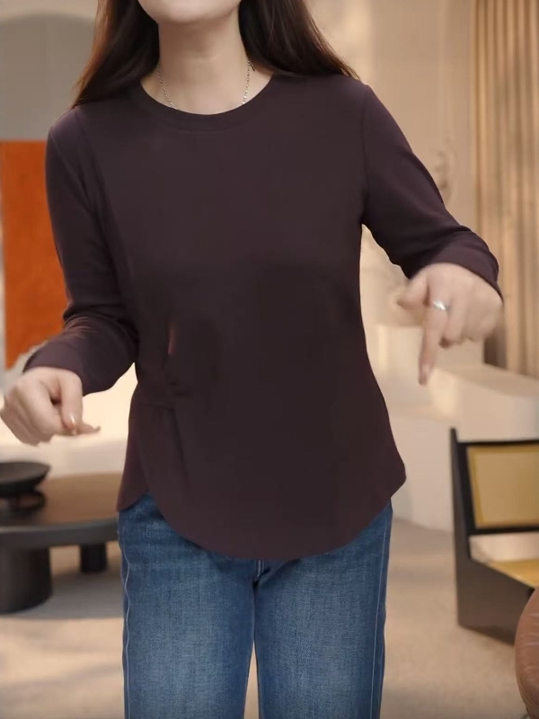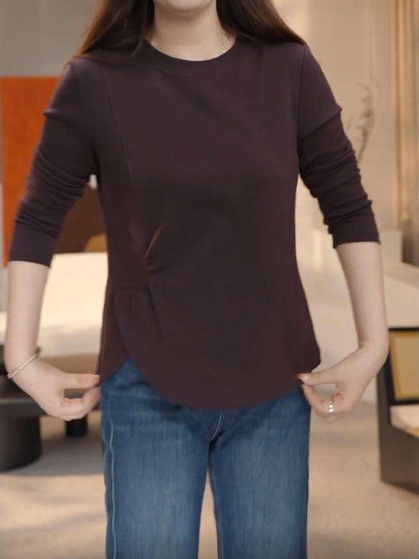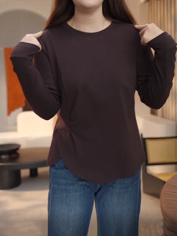 大码女装不规则纯棉正肩长袖t恤2025秋季胖mm收腰巨显瘦内搭上衣