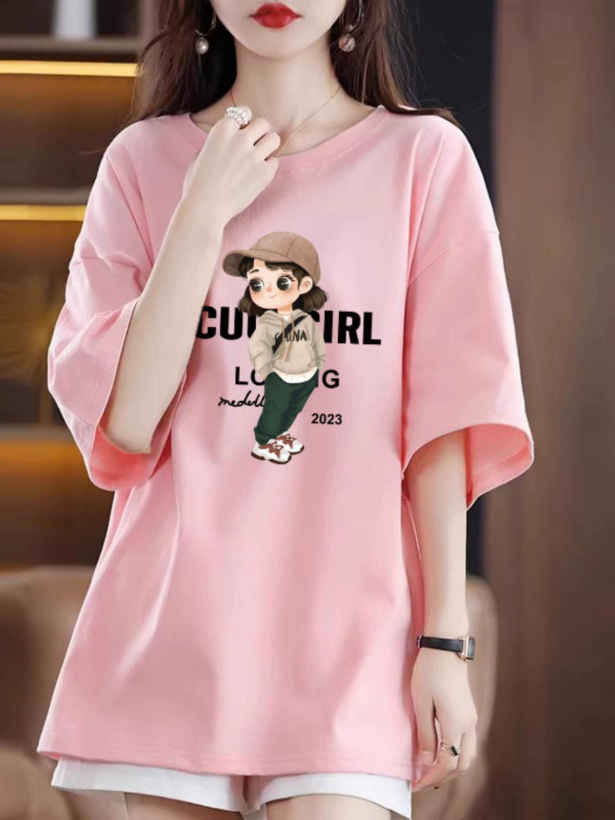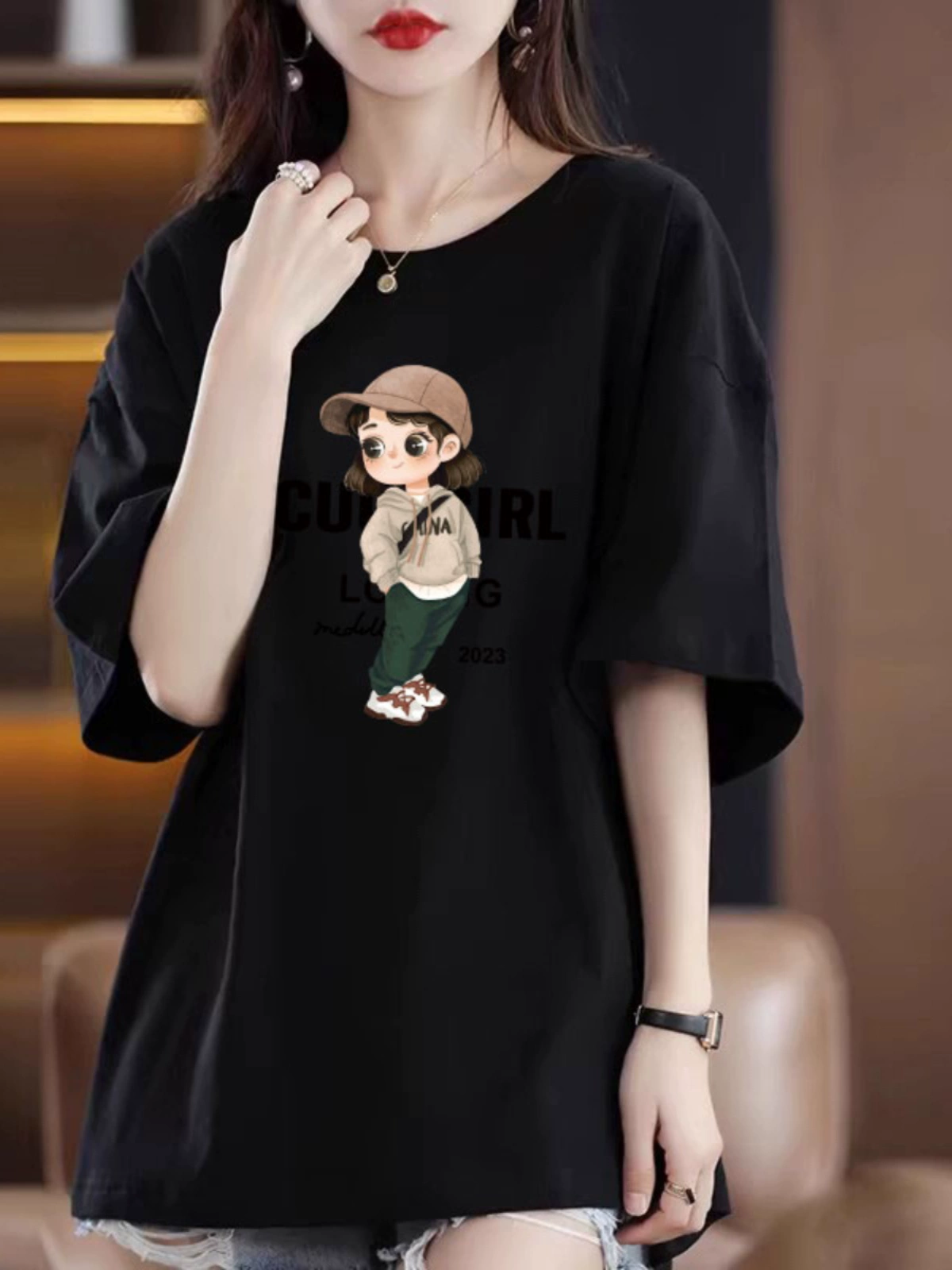 纯棉短袖t恤女2025夏季新款宽松大码中长款上衣美式小众设计感潮