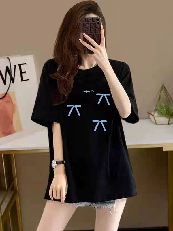 纯棉短袖t恤女2025新款夏季宽松中长款上衣百搭显瘦休闲简约体恤