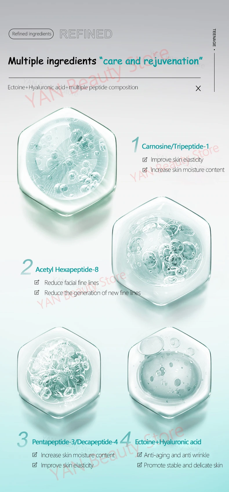 • Effect4: Repair skin barriers, increase skin elasticity, and promote skin metabolism