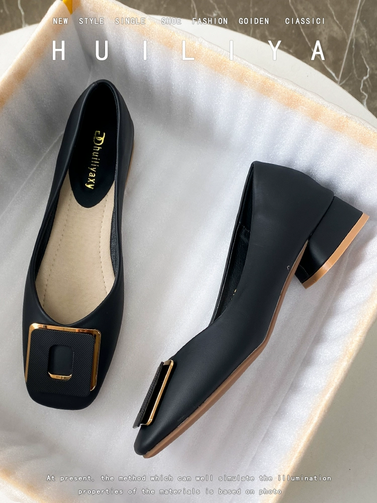 Flats2025spring & fallnew arrival square toe 3cm thick heel low heel soft leather shoes coffee color ladieswear shoes frenchelegant women’s shoes More than 2,000 people have added to their shopping carts