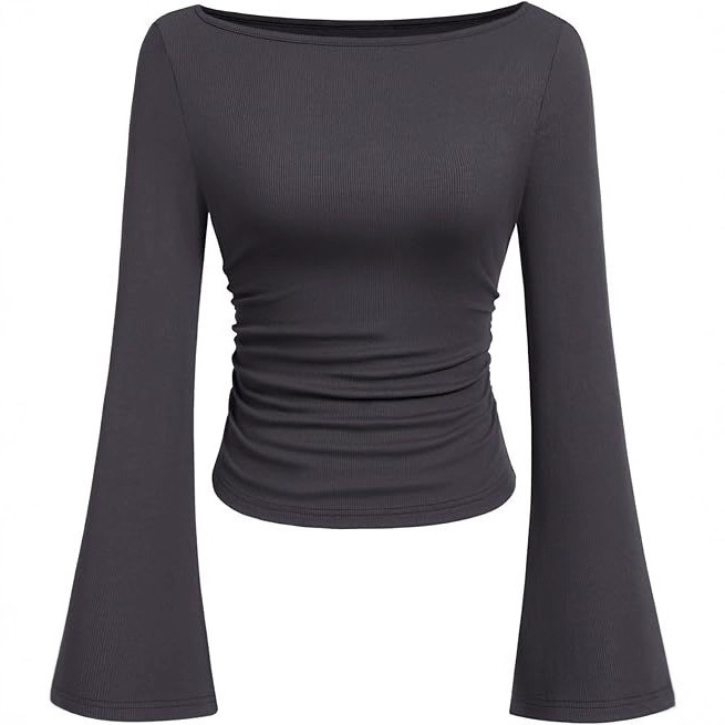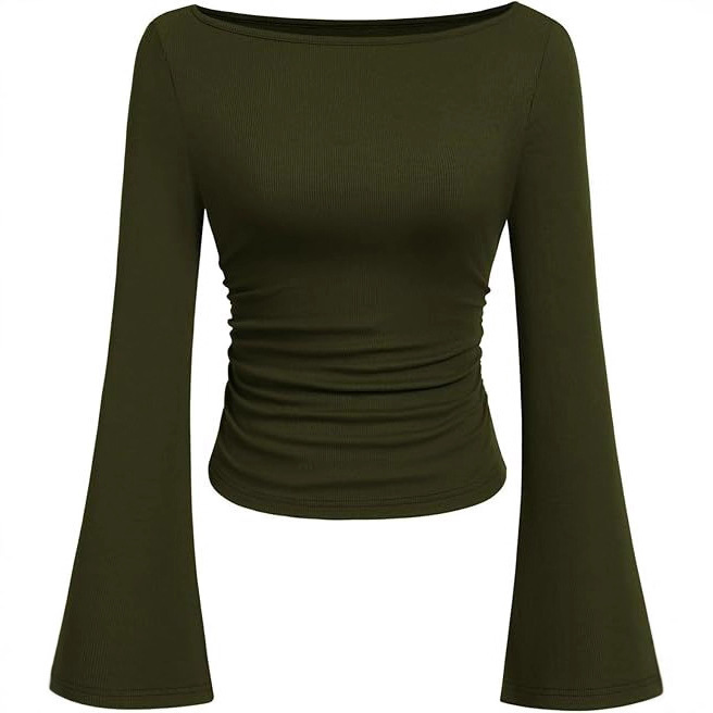 Horn sleeve T-shirt women in autumn 2025 long sleeved shirt