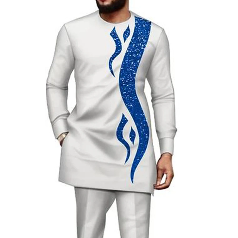 Kaftan Men’s Suit Printed Top Trousers African Ethnic Casual Traditional Cloth 2PCS Suits Outfits Wedding Wear Fashion Male Sets