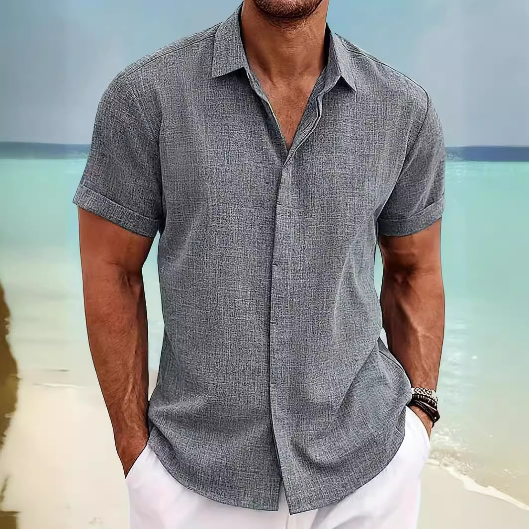 Linen short sleeved shirt夏季男欧美跨境扎染休闲亚麻短袖衬衫