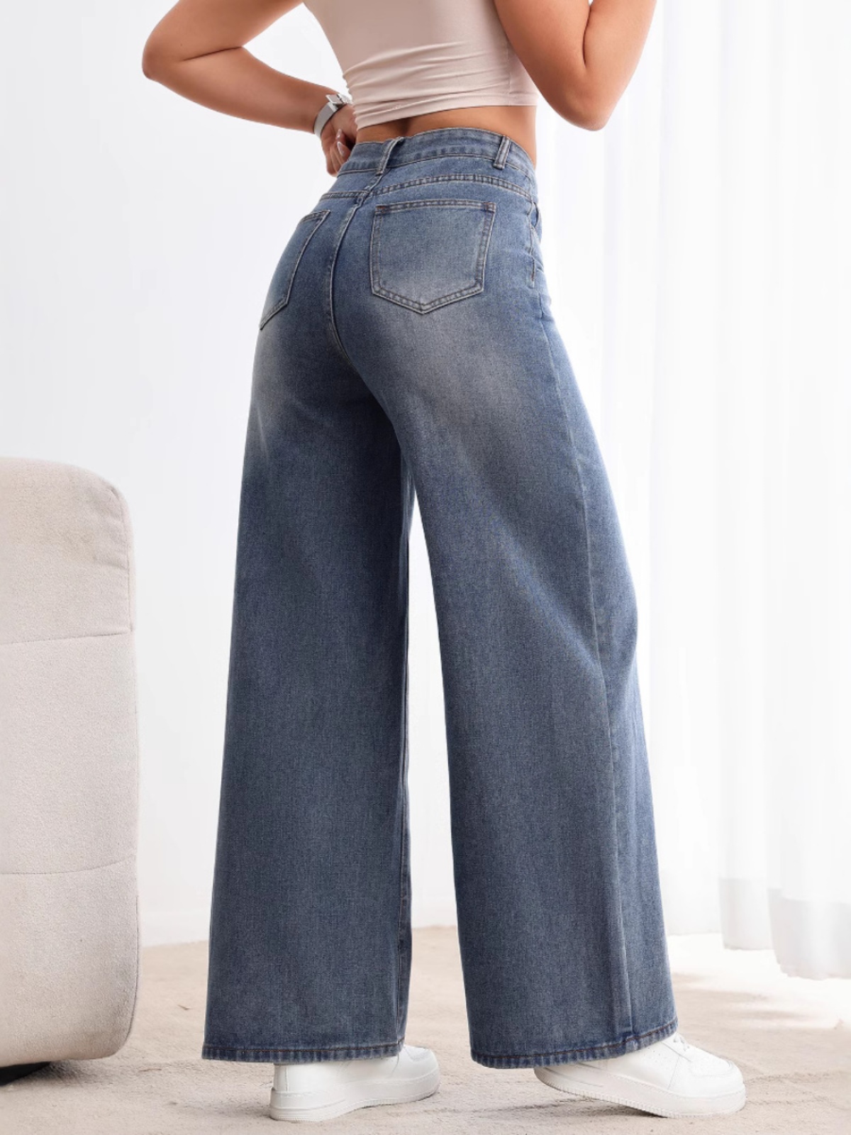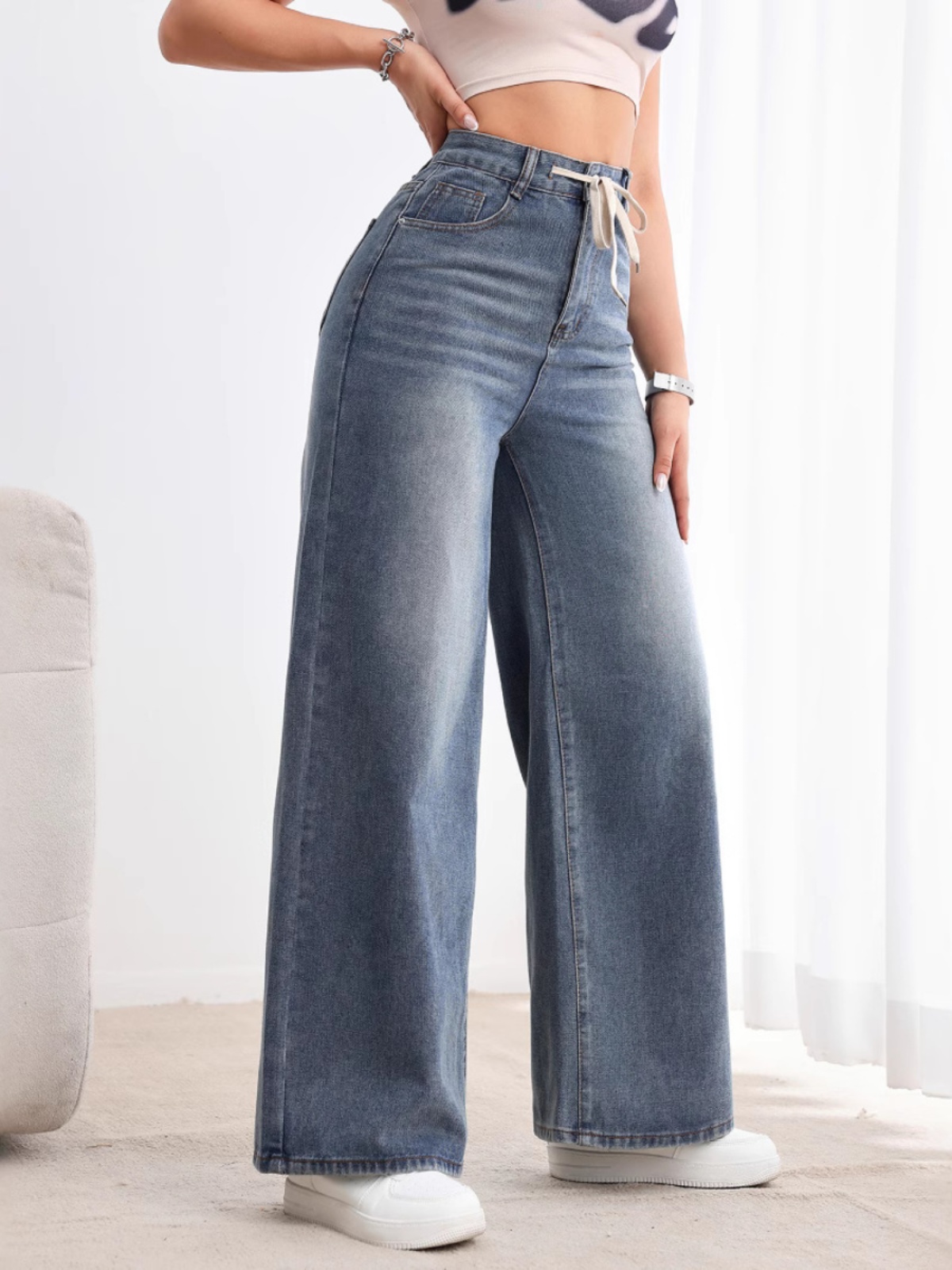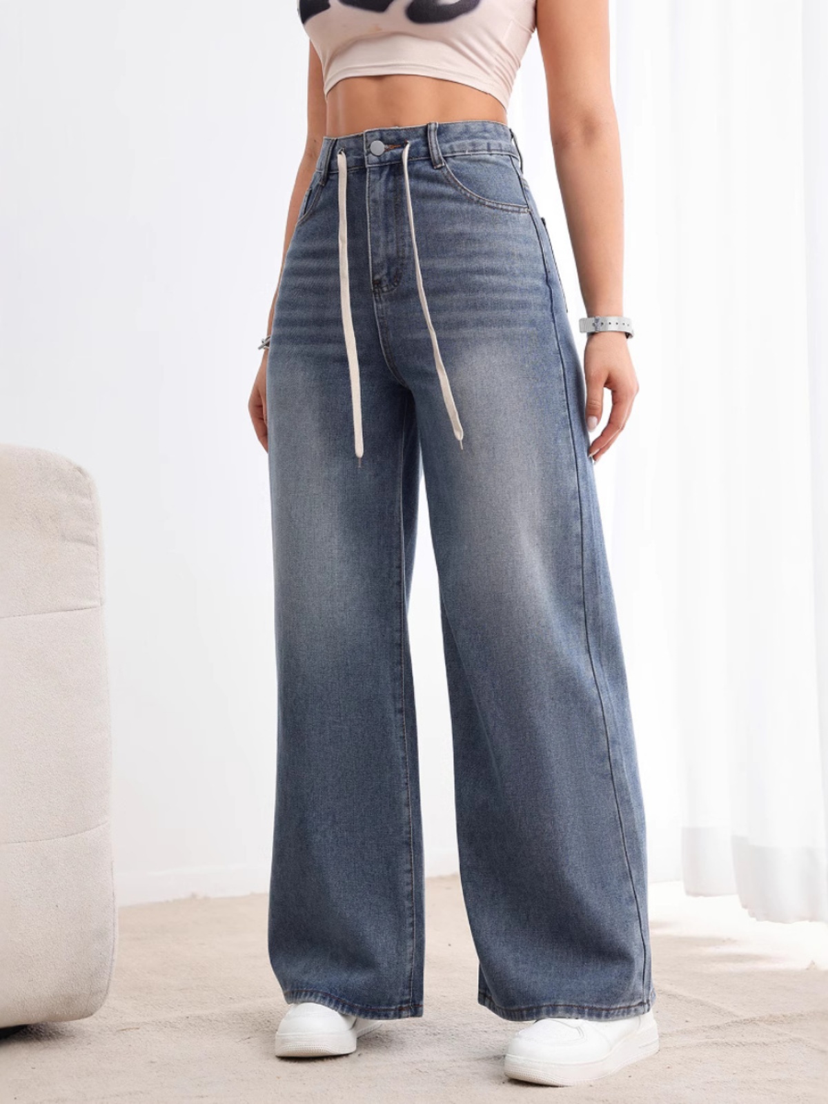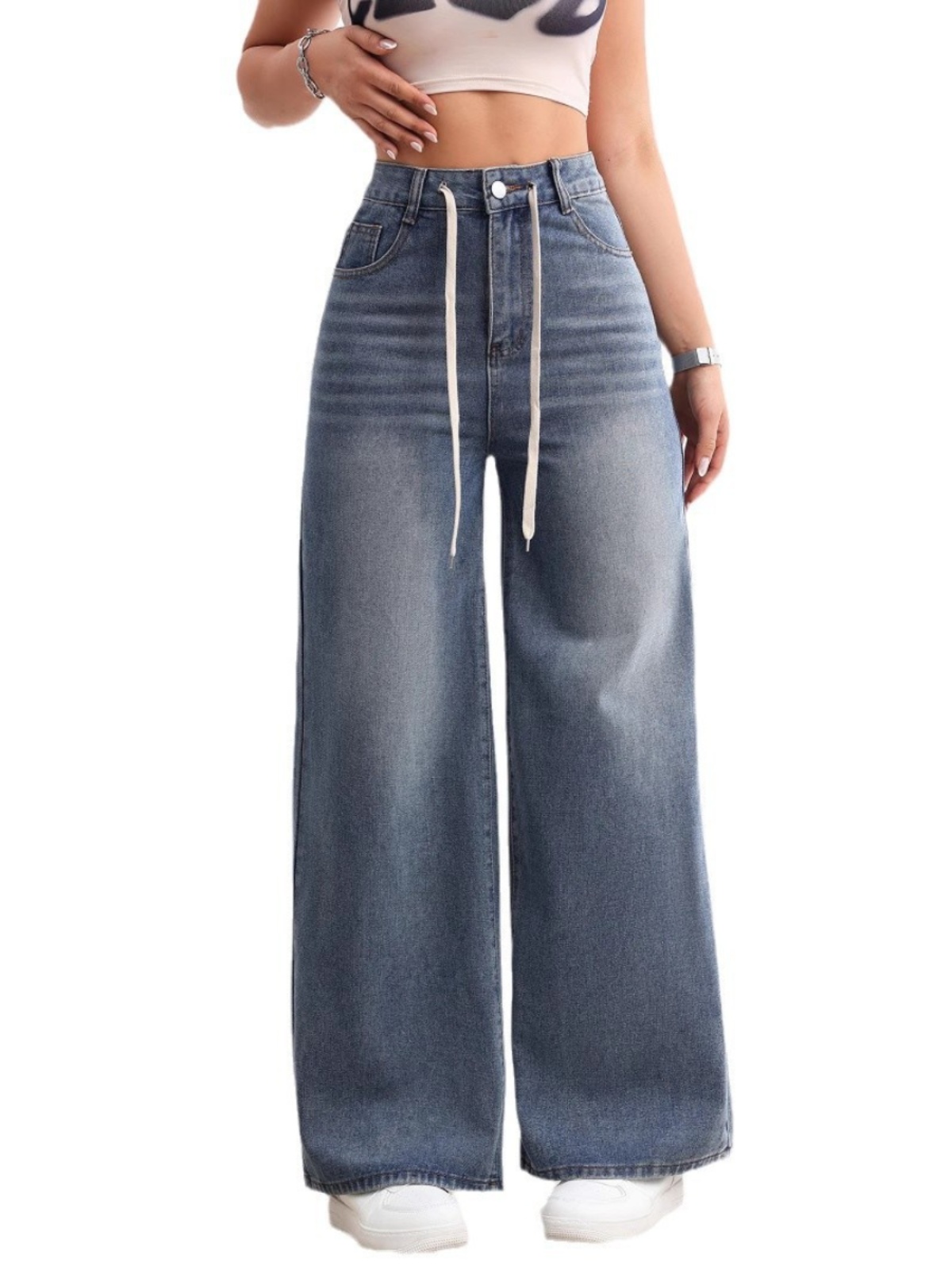 Loose straight leg jeans woman美式复古阔腿裤女宽松垂感牛仔裤