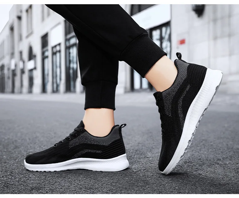 New men’s fashion casual sneakers, men’s flying woven shock-absorbing running shoes, version mesh breathable shoes