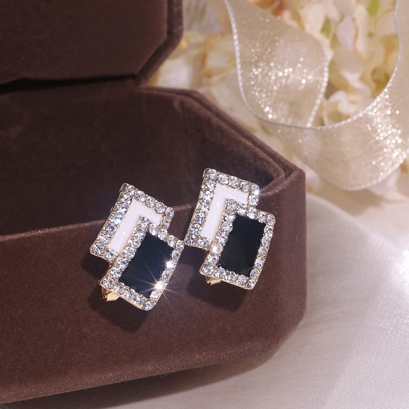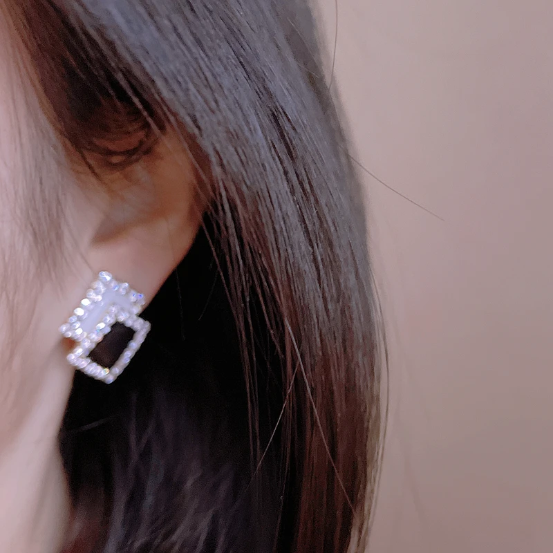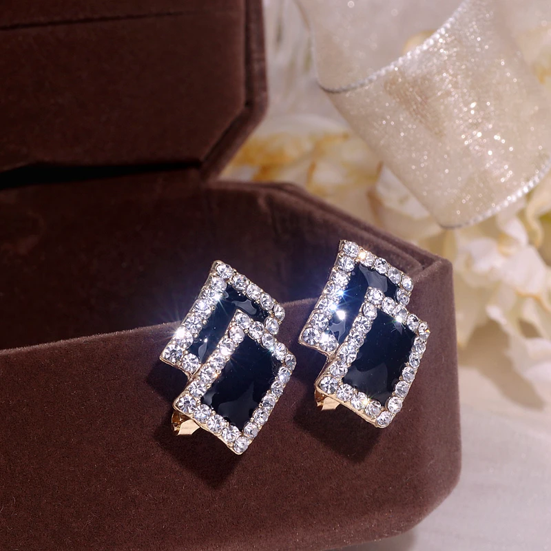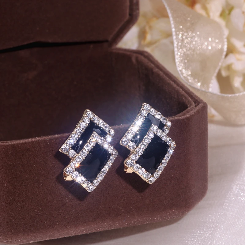 New Trendy Geometric Square Black Stud Earrings for Women Luxury Shiny Rhinestone Earrings Weddings Party Jewelry Accessories