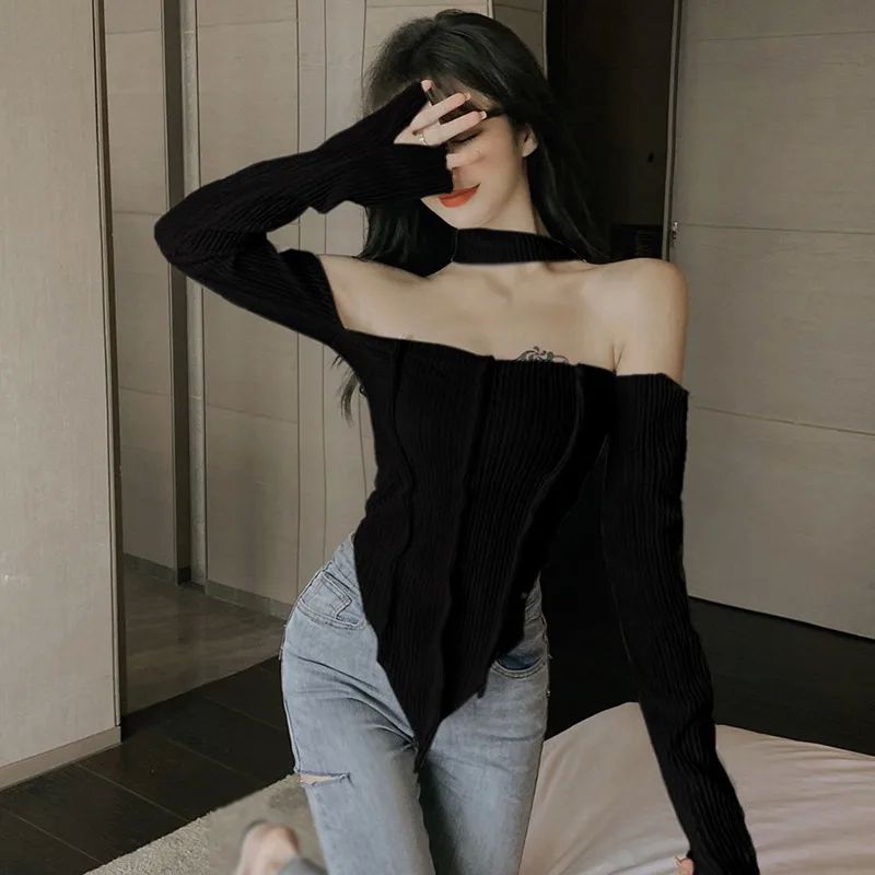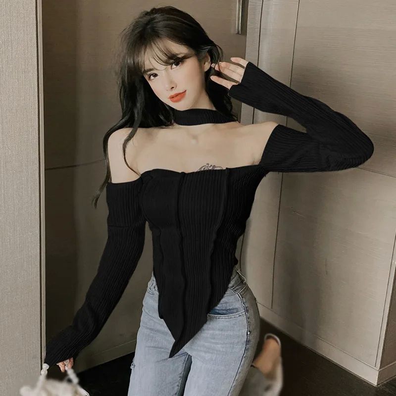 Off Shoulder Long Sleeve Top Tee Shirt Femme Y2K Clothes Gr