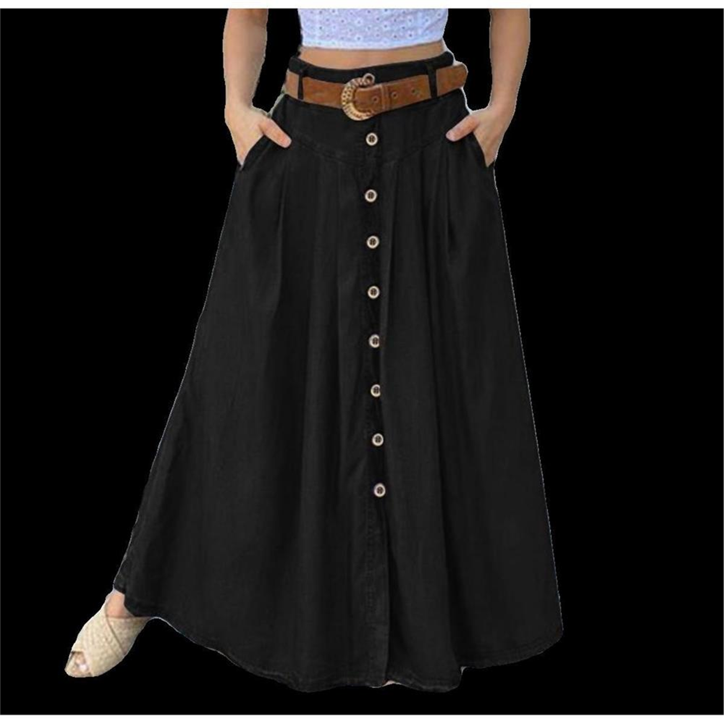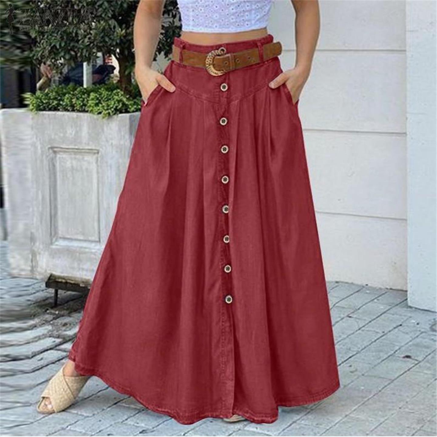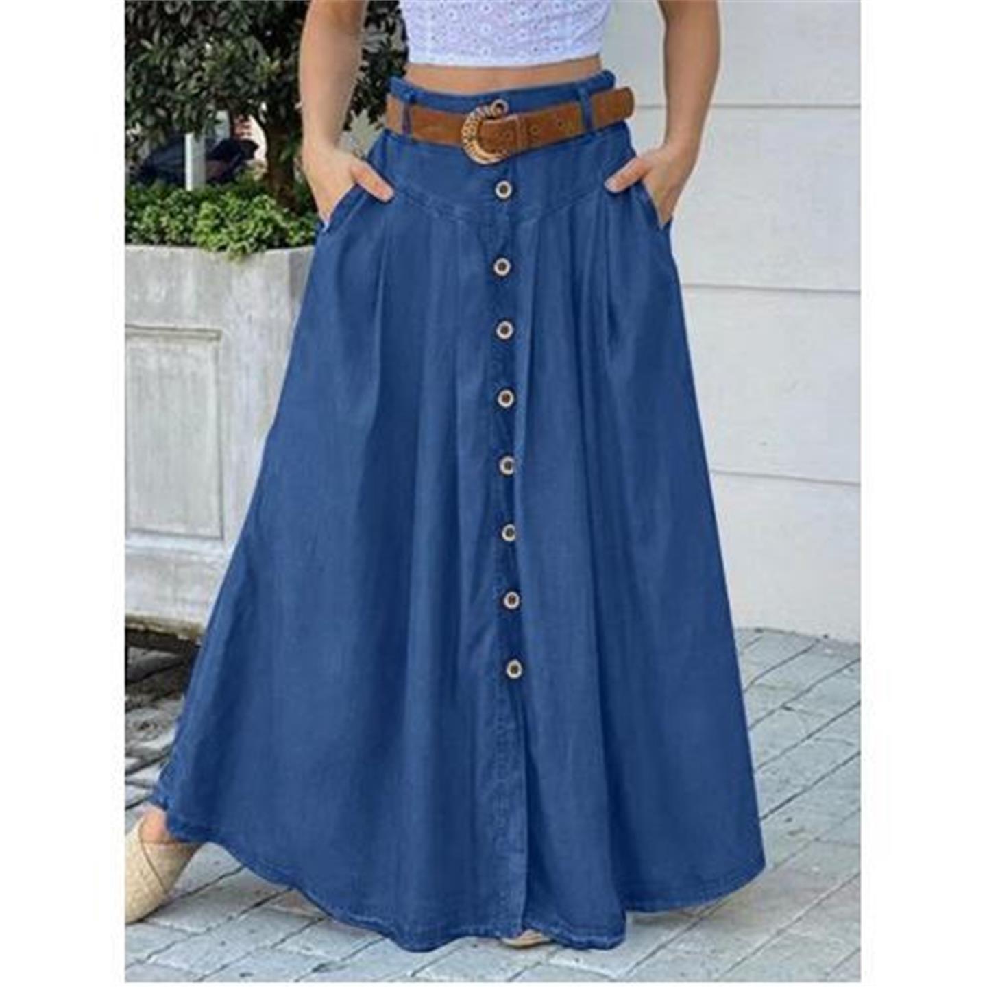 plus size skirts for women long skirt 纽扣高腰大码休闲半身00