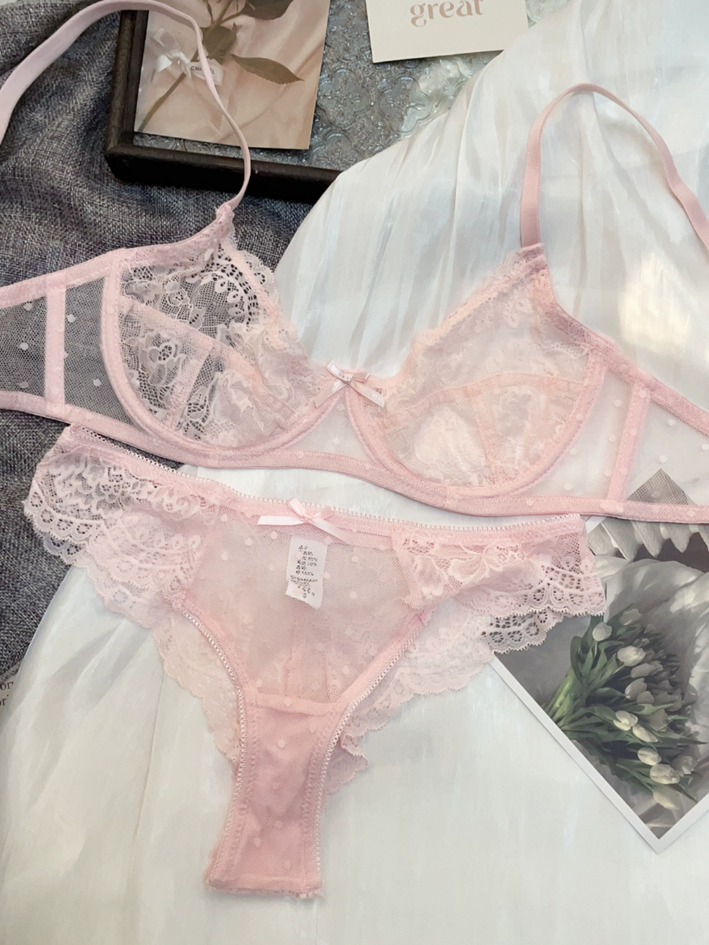 Pure desire french transparent bra suit women’s ultra-thin fairy lace half cup underwire push-up