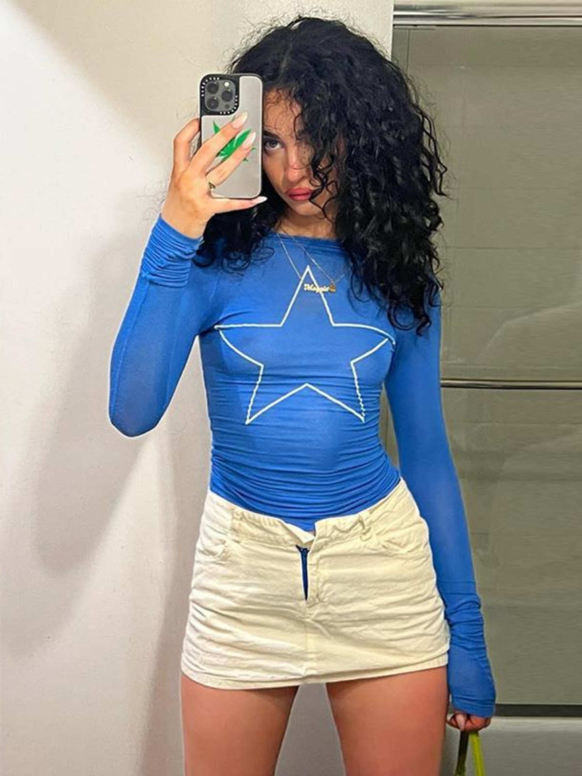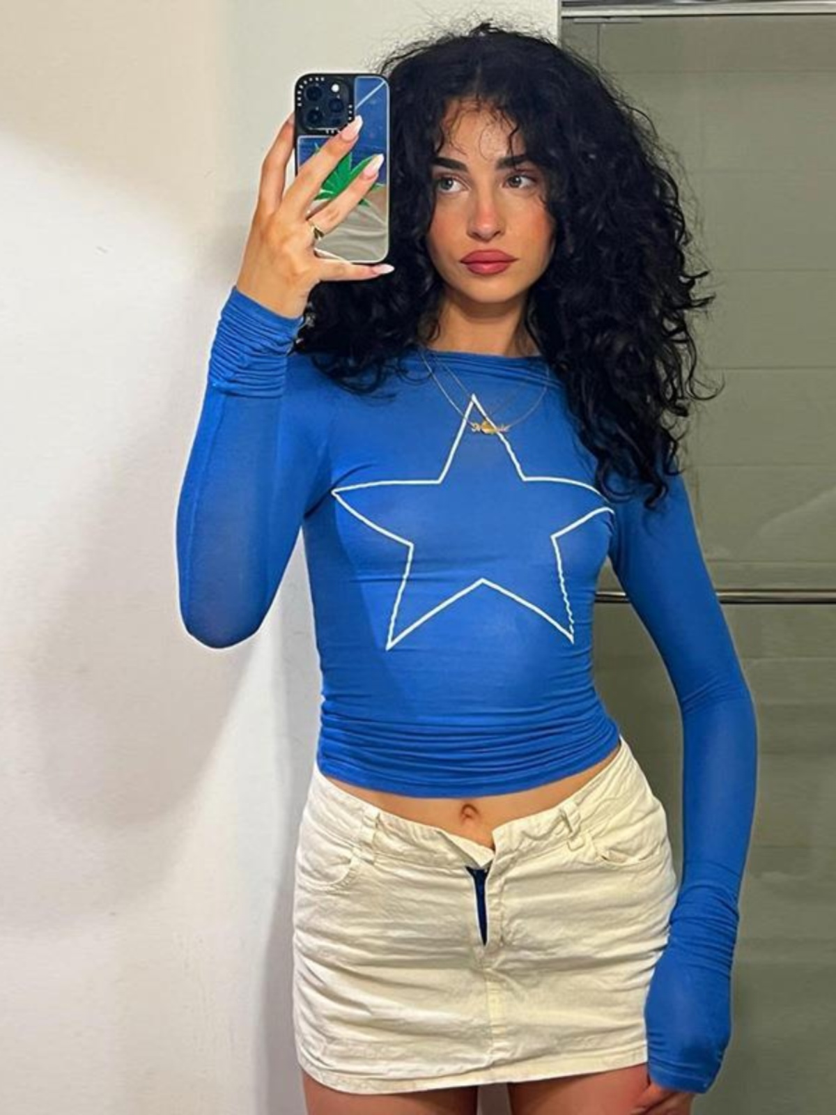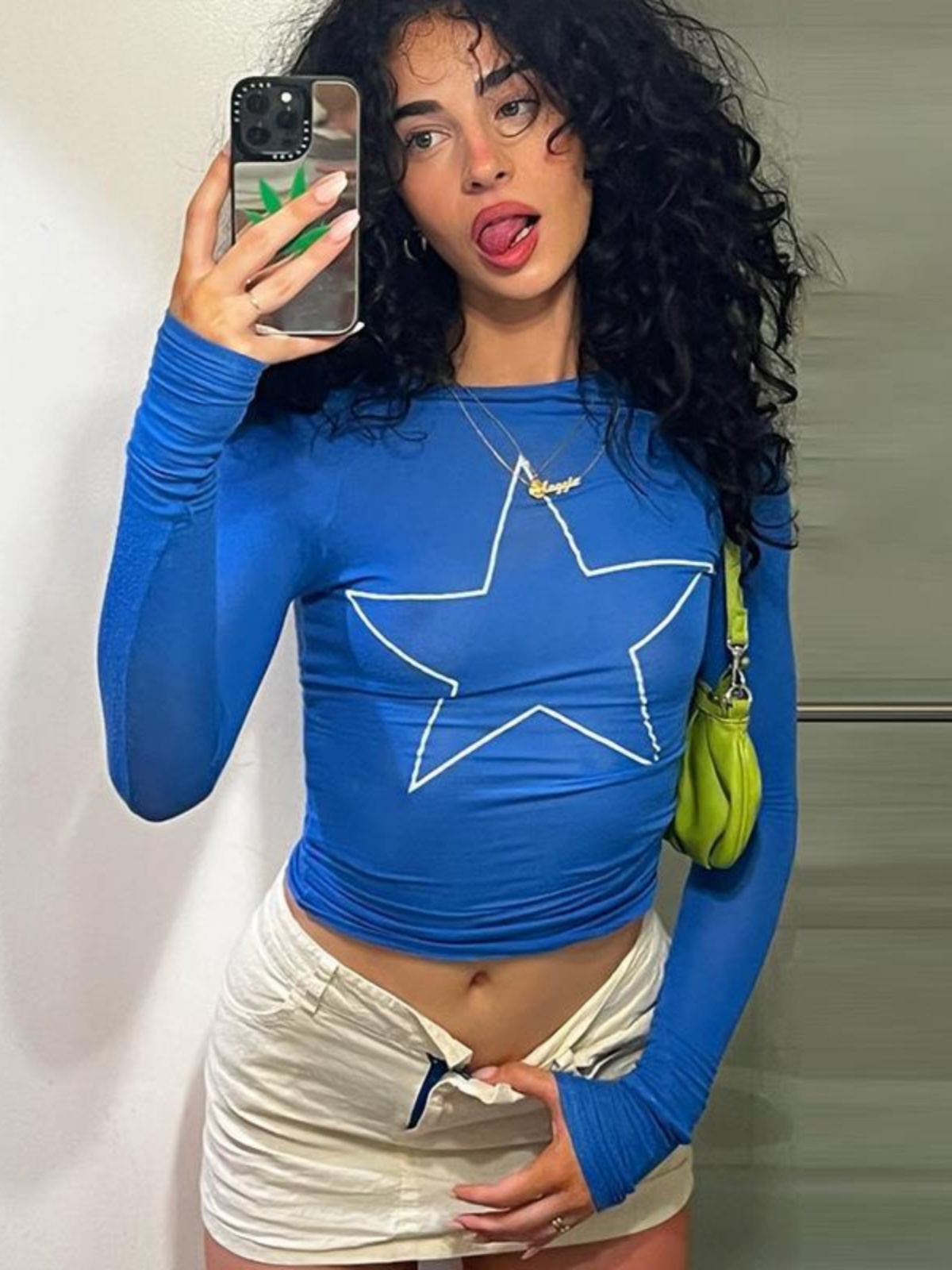 Sexy tight printed crew neck long sleeve T-shirt 性感紧身T恤