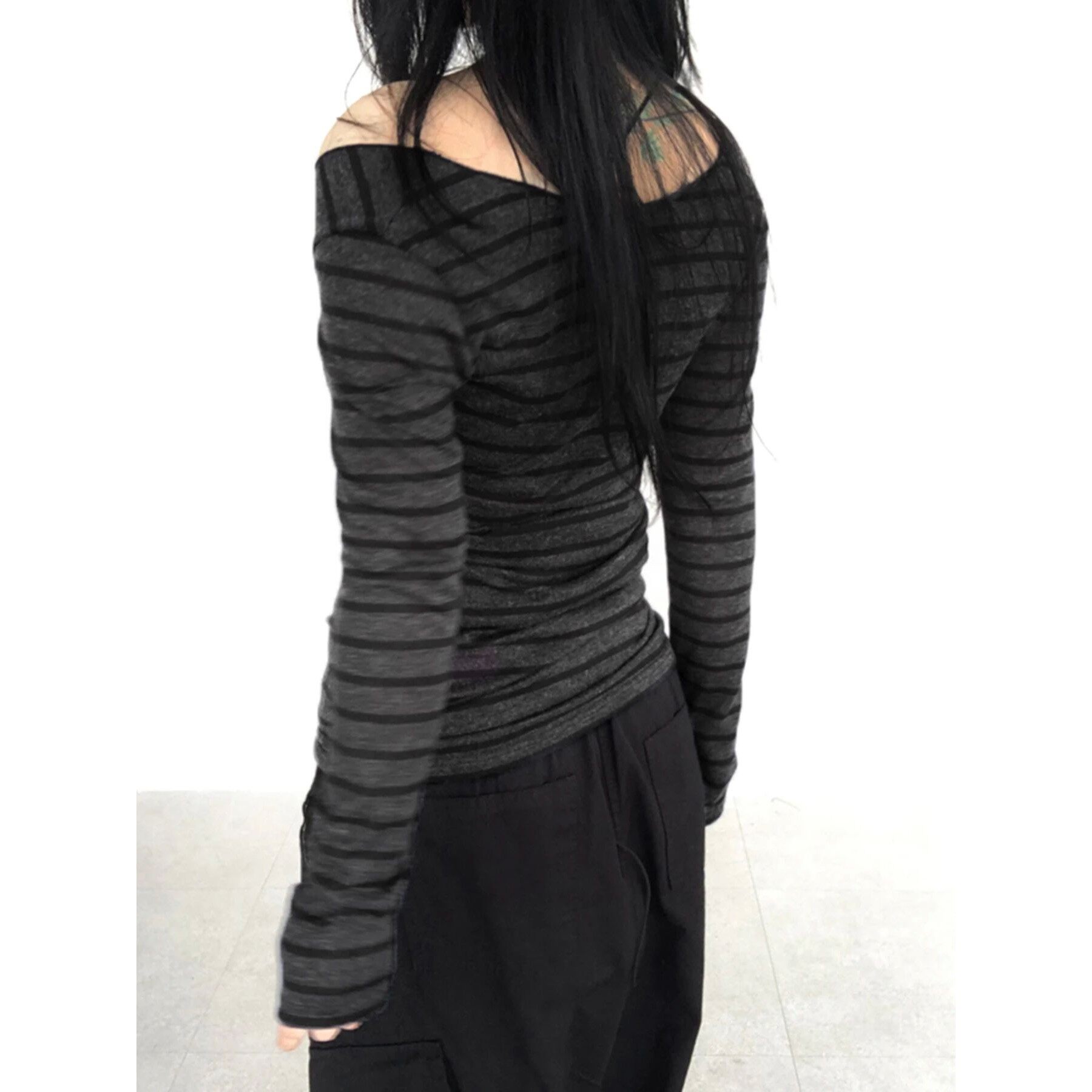 Sweetown Japanese Basic Slim Long Sleeve Stripe Tee Off Shou