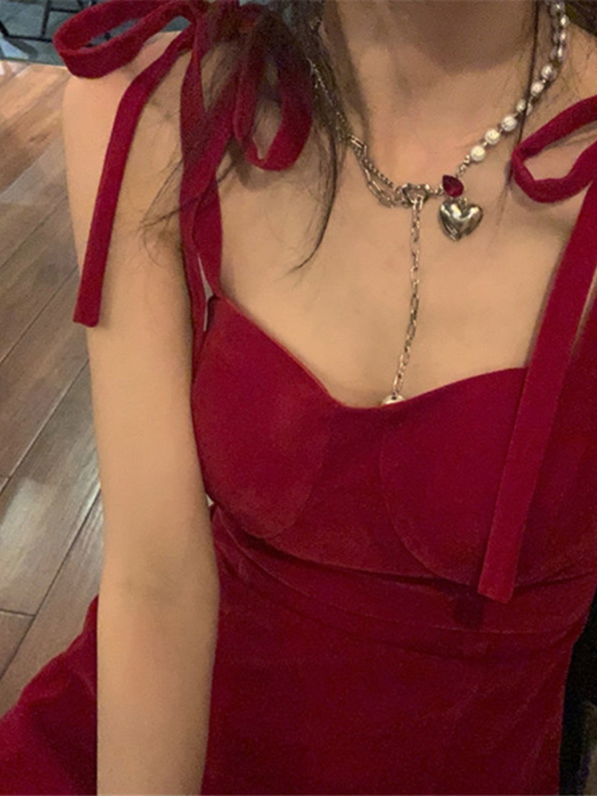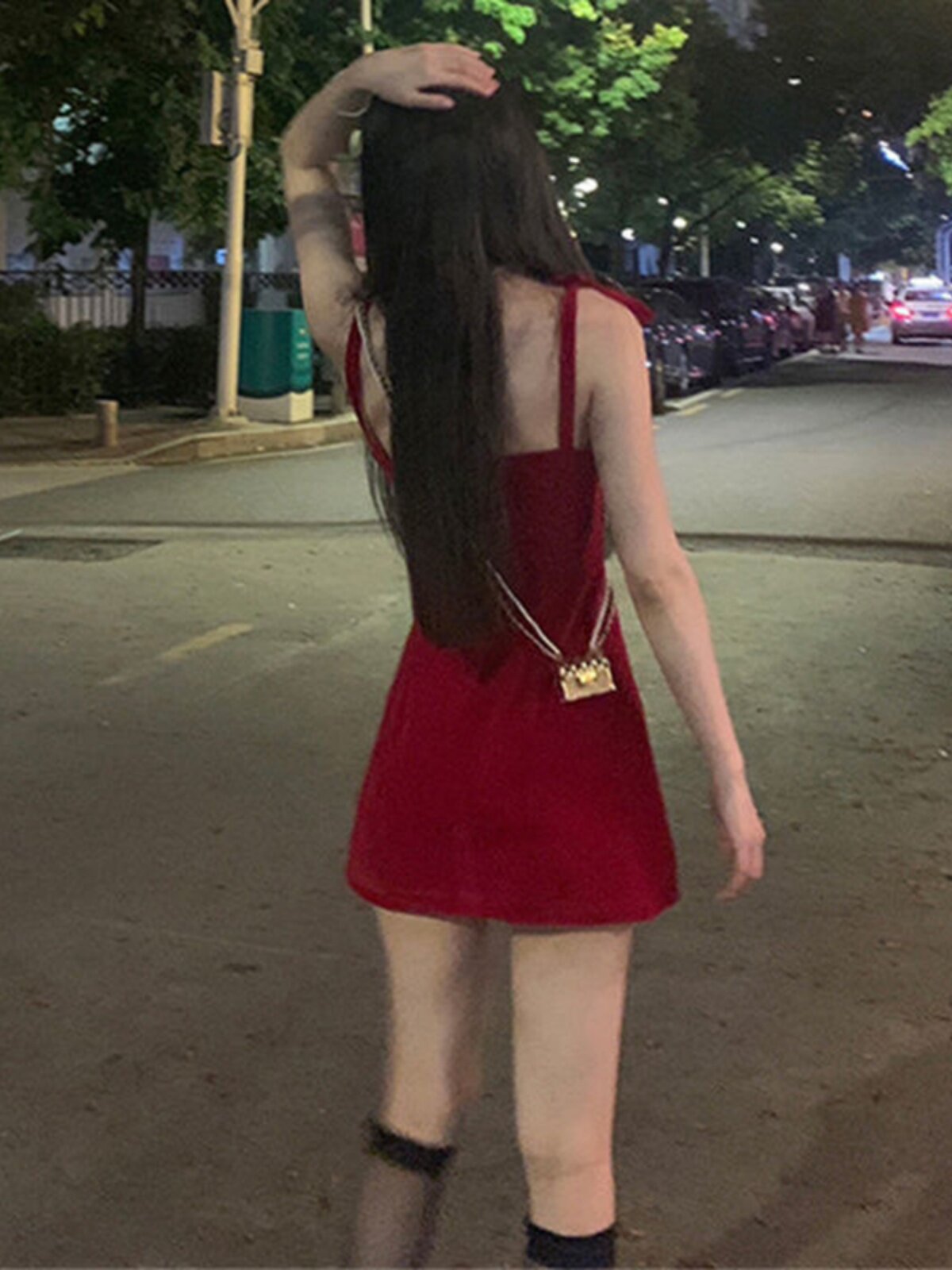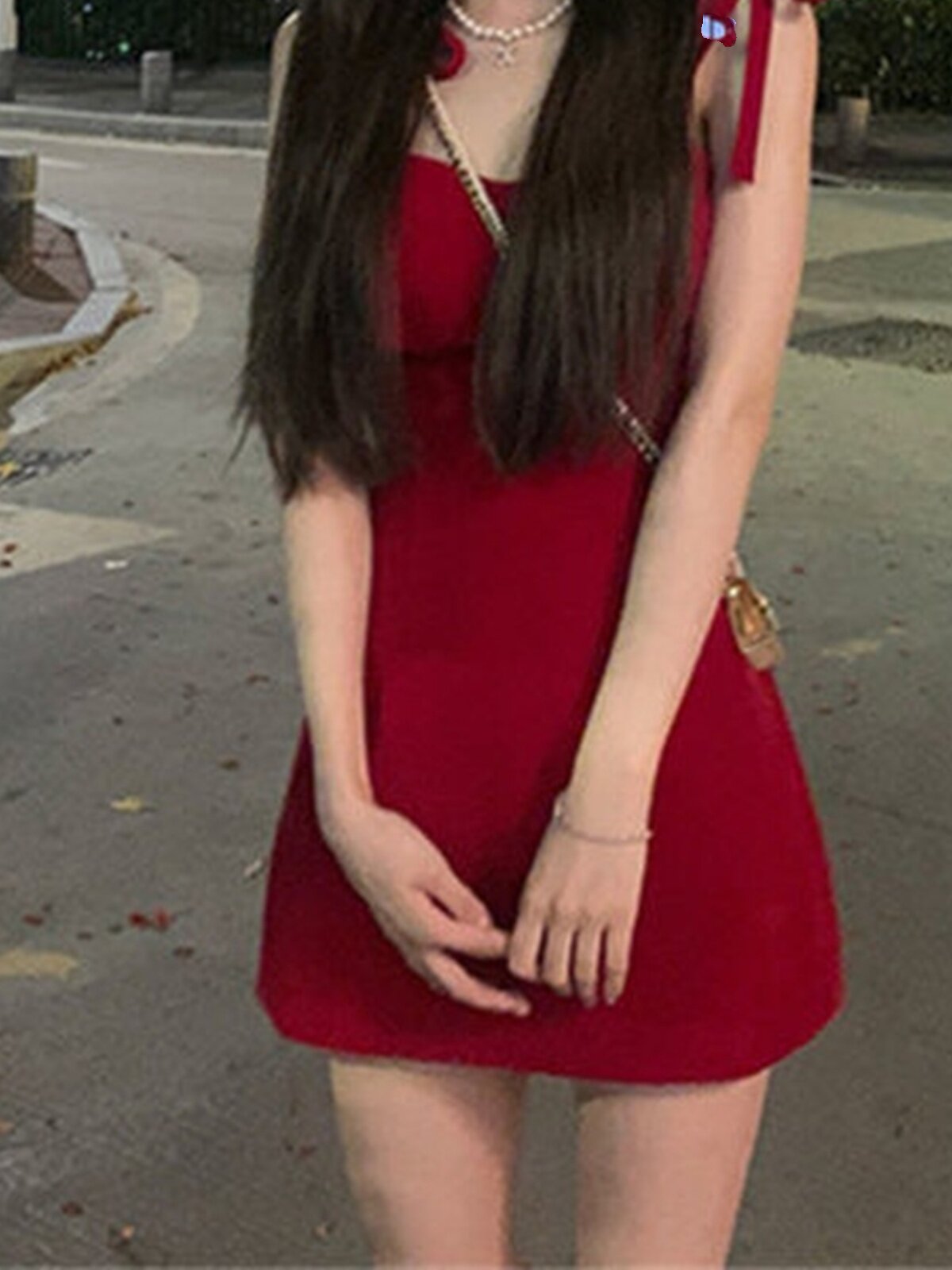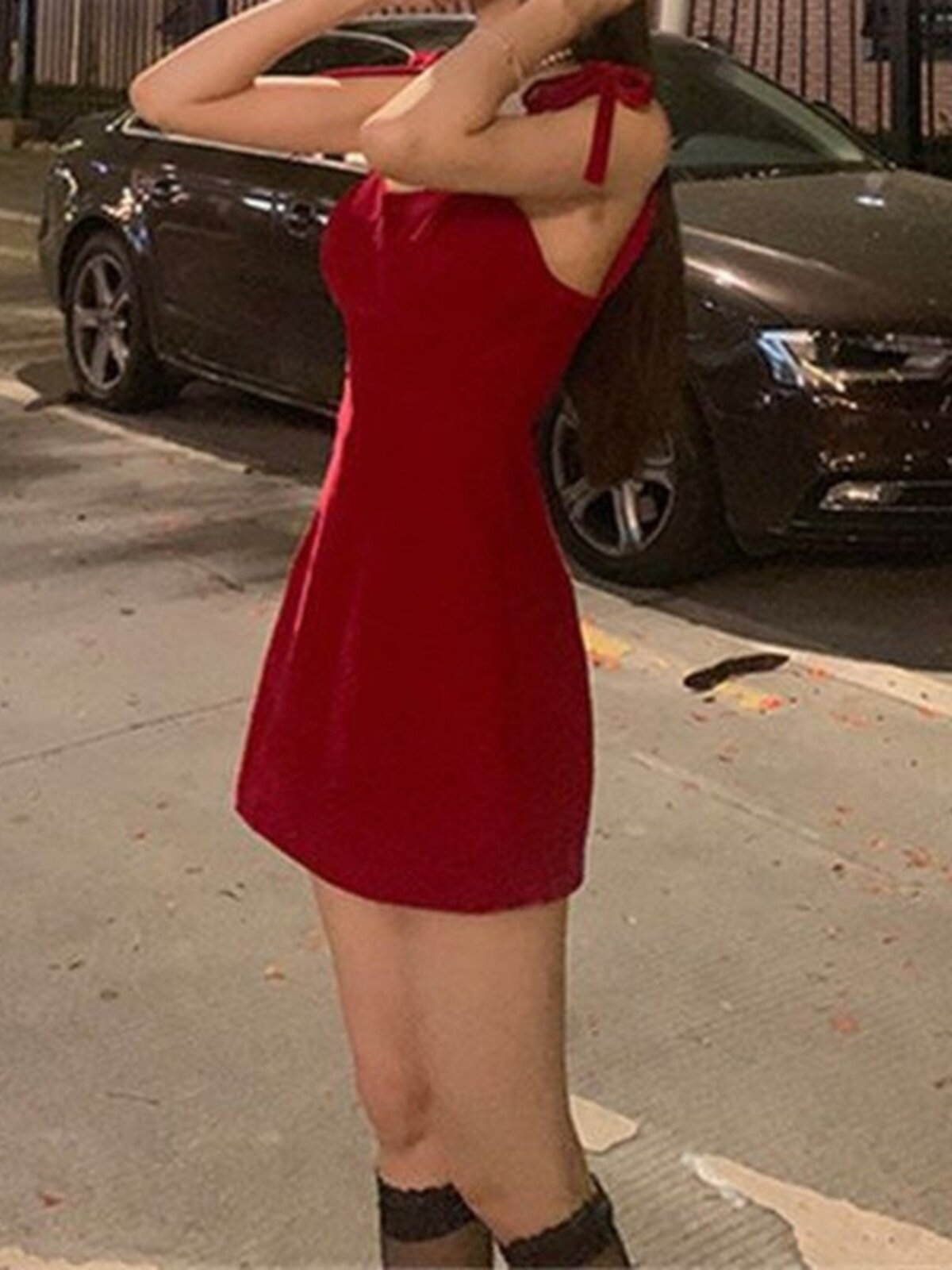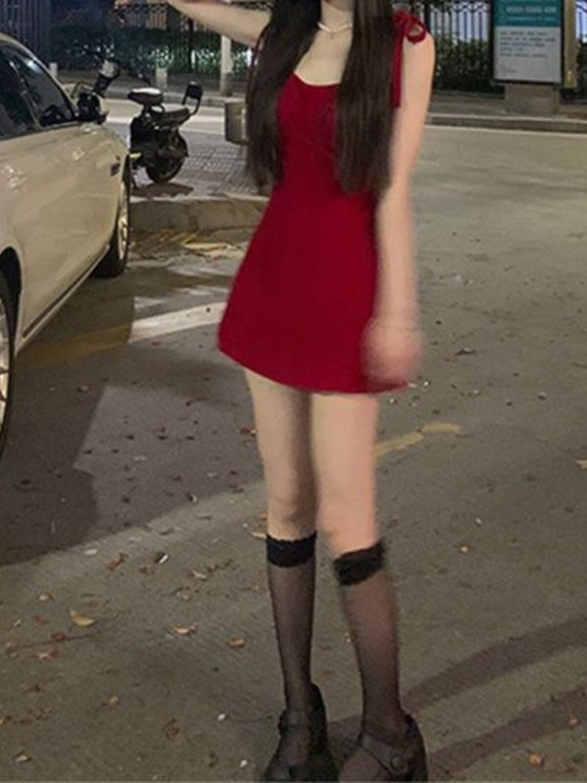 Vintage Red Strap Short Fit Dress复古红色绑带短款修身连衣裙
